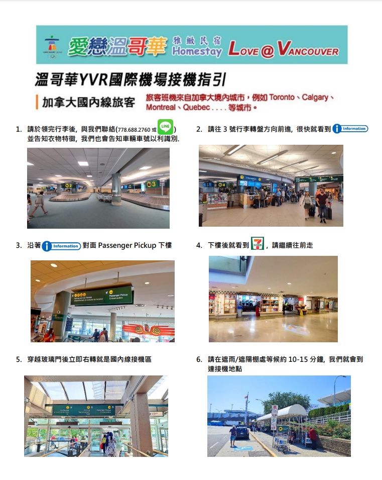 國內線接機程序 (適用來自加拿大國內各城市)